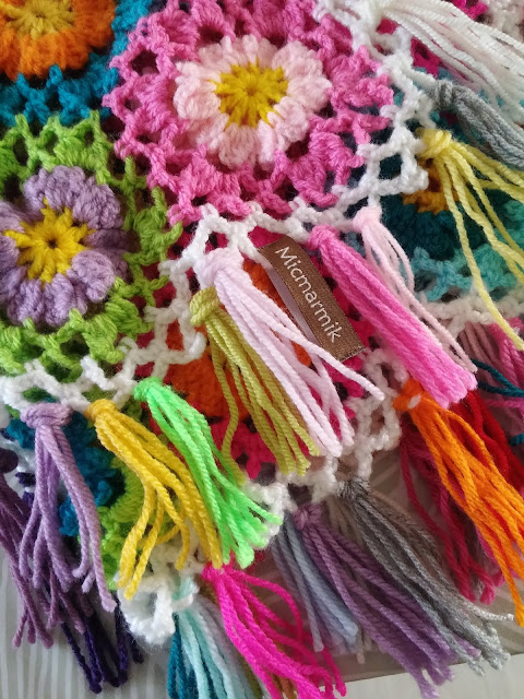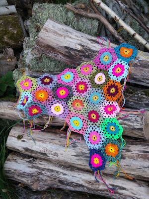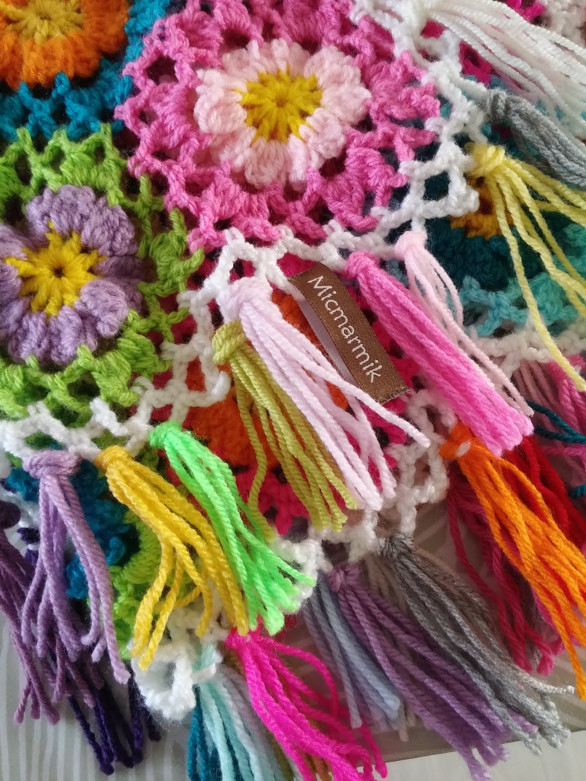 I found this patter in a book from “Allers” (a swedish publication) from 1984, at a flee market. The book showed how to make a blanket with the flowers, but I wanted to make a poncho instead. It was not easy to figure out how to make the poncho, but when I saw the result it was worth it! In this book, I also found the “rustic lace square pattern”. It was a real surprice!