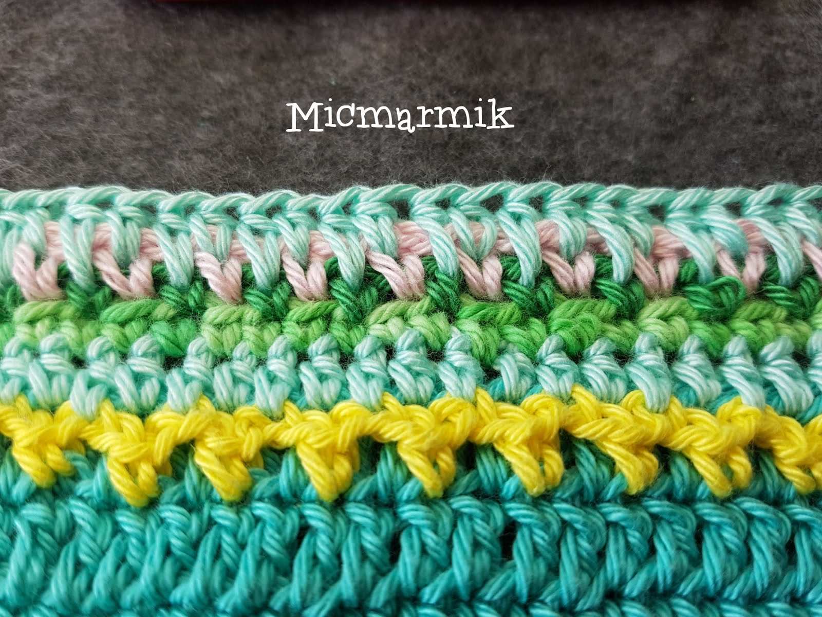 Kortare upprepning innom en längre upprepning, t.ex.: ”*1 lm, **1 fm** 2 ggr* 5 ggr” betyder ”1 lm följt av en upprepning av 2 fm; upprepat 5 ggr” | ||